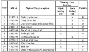 Thí sinh có bằng tốt nghiệp đại học ngành khác dự tuyển vào ngành “Quản lý giáo dục” hoặc “Quản lý tài nguyên và môi trường” phải có tối thiểu 02 (hai) năm kinh nghiệm làm việc trong lĩnh vực đăng ký dự tuyển tính đến thời điểm đăng ký dự tuyển (có giấy xác nhận của cơ quan công tác). (Mẫu kèm theo)
