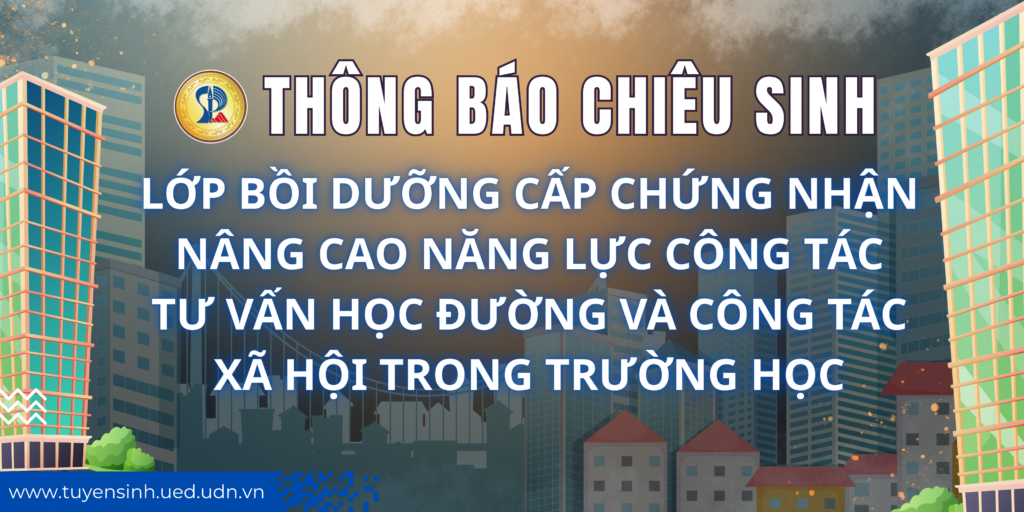 Căn cứ Thông báo số 1761/TB-ĐHSP ngày 16/10/2025 của Hiệu trưởng Trường Đại học Sư phạm – ĐHĐN về việc thông báo mở lớp bồi dưỡng “Nâng cao năng lực công tác tư vấn học đường và công tác xã hội trong trường học” Hình thức học: Trực tiếp hoặc trực tiếp kết hợp trực…